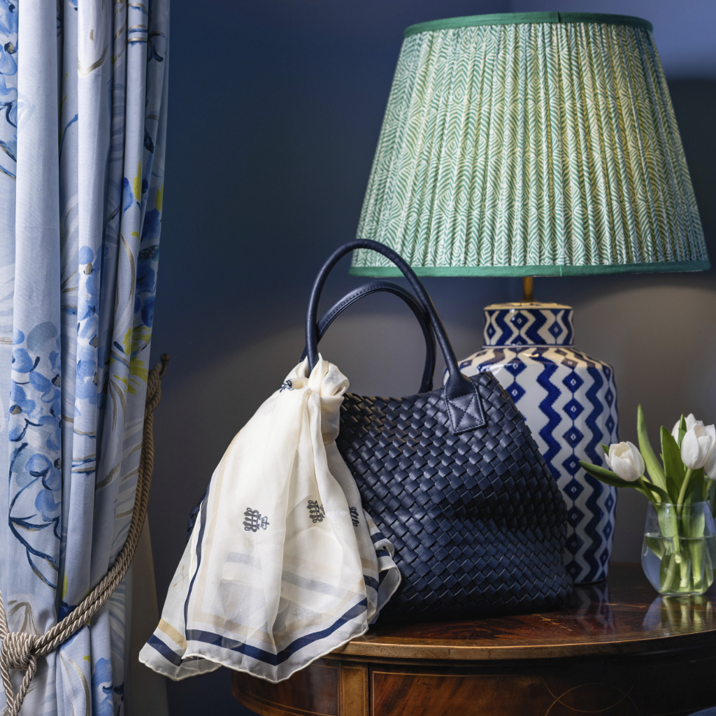 A beautiful silk scarf handmade exclusively for our members to purchase. A cream background with navy logos and gold crossed oars.