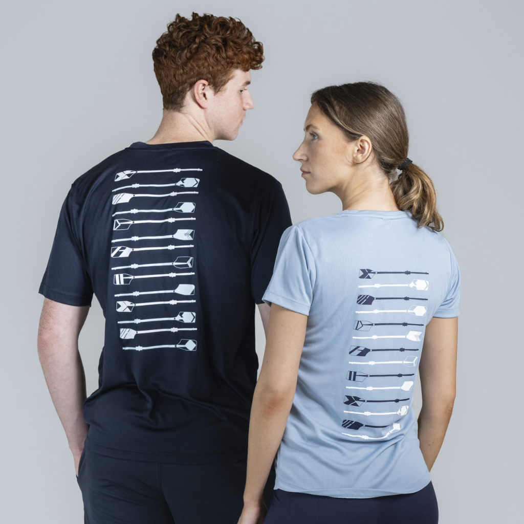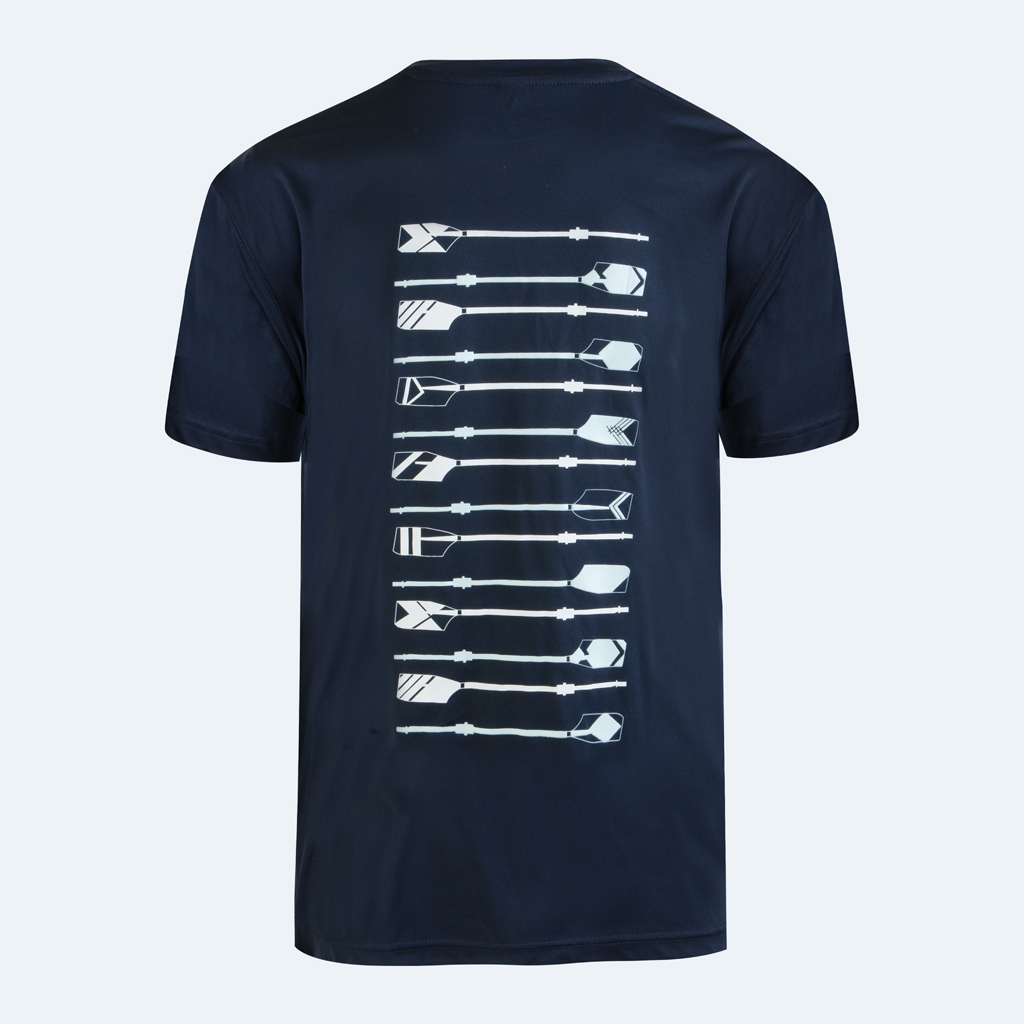 New for 2026, this navy sports T Shirt features our popular design of stacked oars.