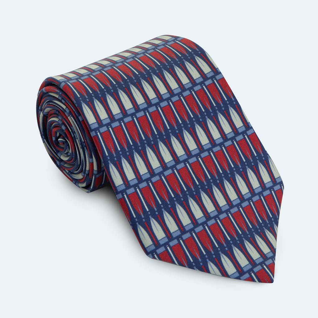 A subtle design of oars creates a smart but fun silk tie for all rowing enthusiasts.
